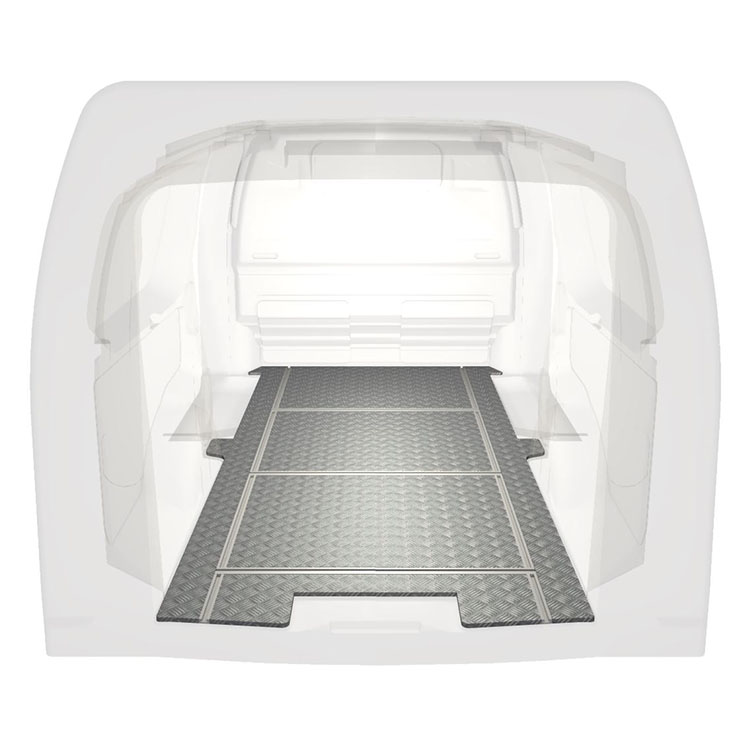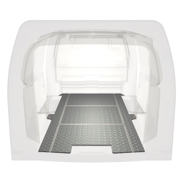 Available for a range of van models, our lightweight and robust floor with transverse rails come with anti-slip aluminum tread plate and cargo rails (longitudinal and transverse) for quick and safe installation of racking systems and other accessories. The floor installation requires no drilling and is fitted using highly adhesive glue, which is stronger than nuts and bolts, and protects the residual value of the vehicle.
