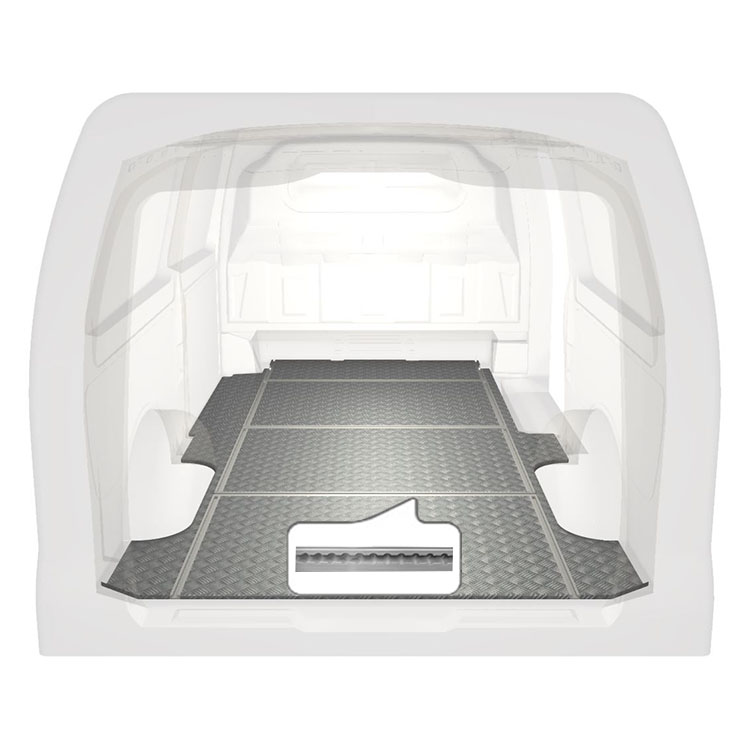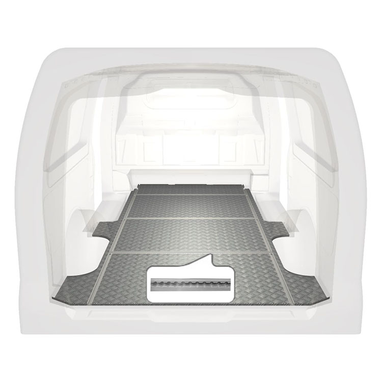 Available for a range of van models, our lightweight and robust floor with transverse rails come with anti-slip aluminum tread plate and cargo rails (longitudinal and transverse) for quick and safe installation of racking systems and other accessories. The floor installation requires no drilling and is fitted using highly adhesive glue, which is stronger than nuts and bolts, and protects the residual value of the vehicle.