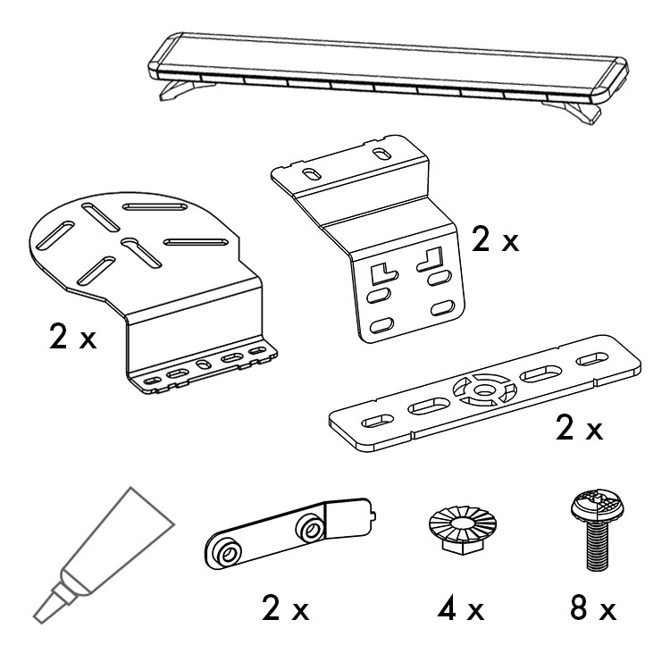 Also note that the fitting material, included with each kit, is intended for body installation. Brackets for non-intrusive installation in floor and wall rails are supplied separately.