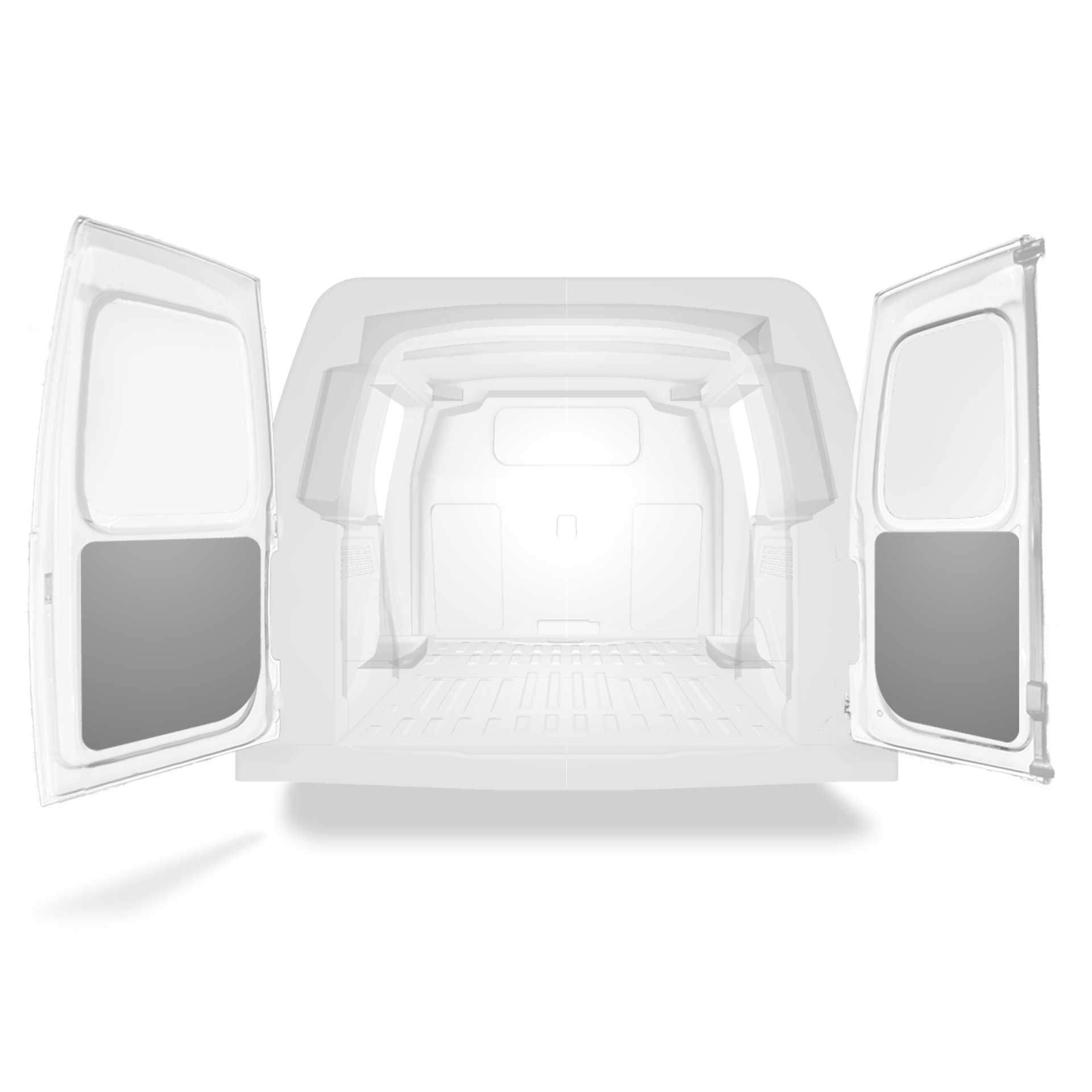 The rear door linings are designed and fabricated to fit in the sections of the rear door/tailgate of the vehicle to minimize weight. The liners protect the vehicle, create a bright working environment and are easy to wipe clean.