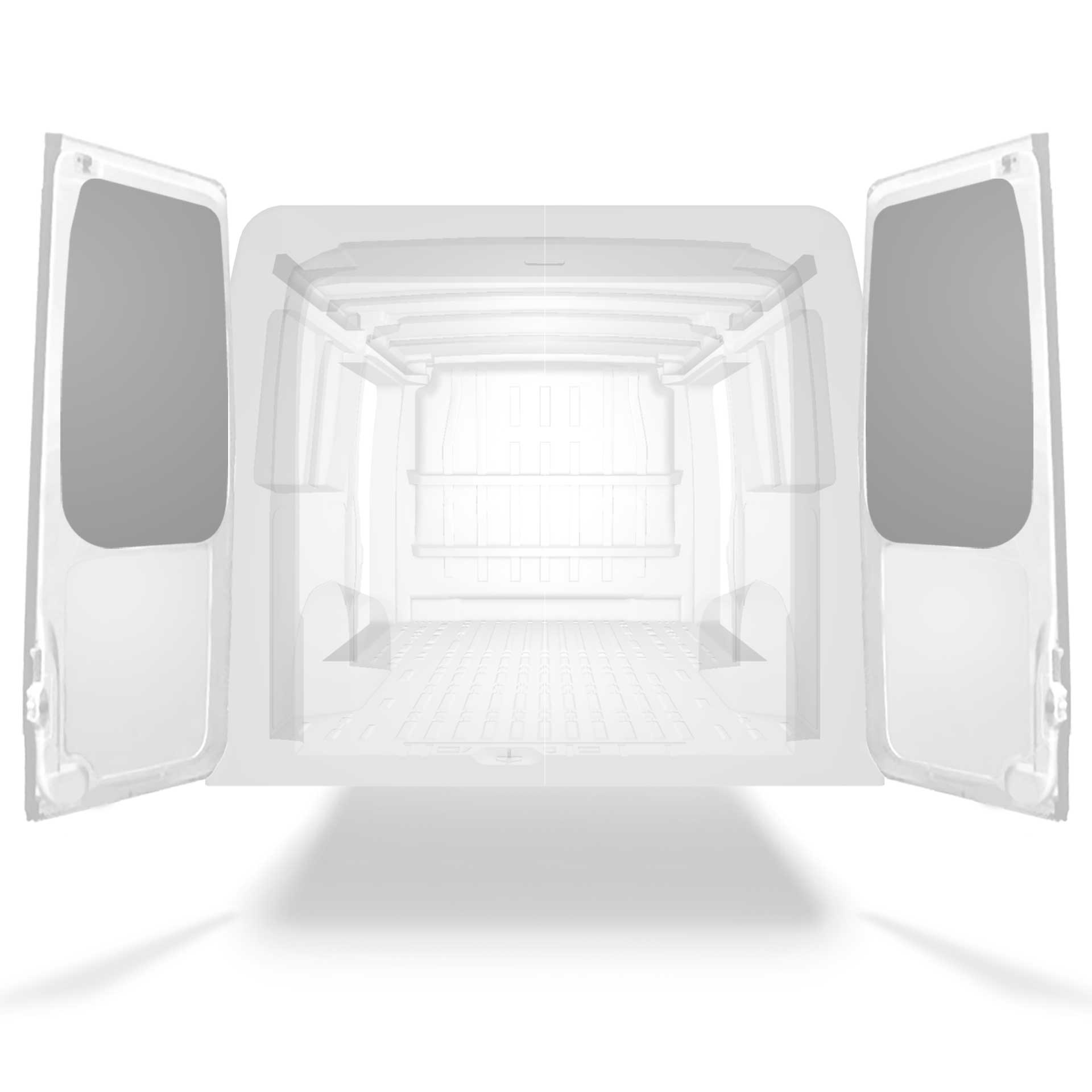 The rear door linings are designed and fabricated to fit in the sections of the rear door/tailgate of the vehicle to minimize weight. The liners protect the vehicle, create a bright working environment and are easy to wipe clean.