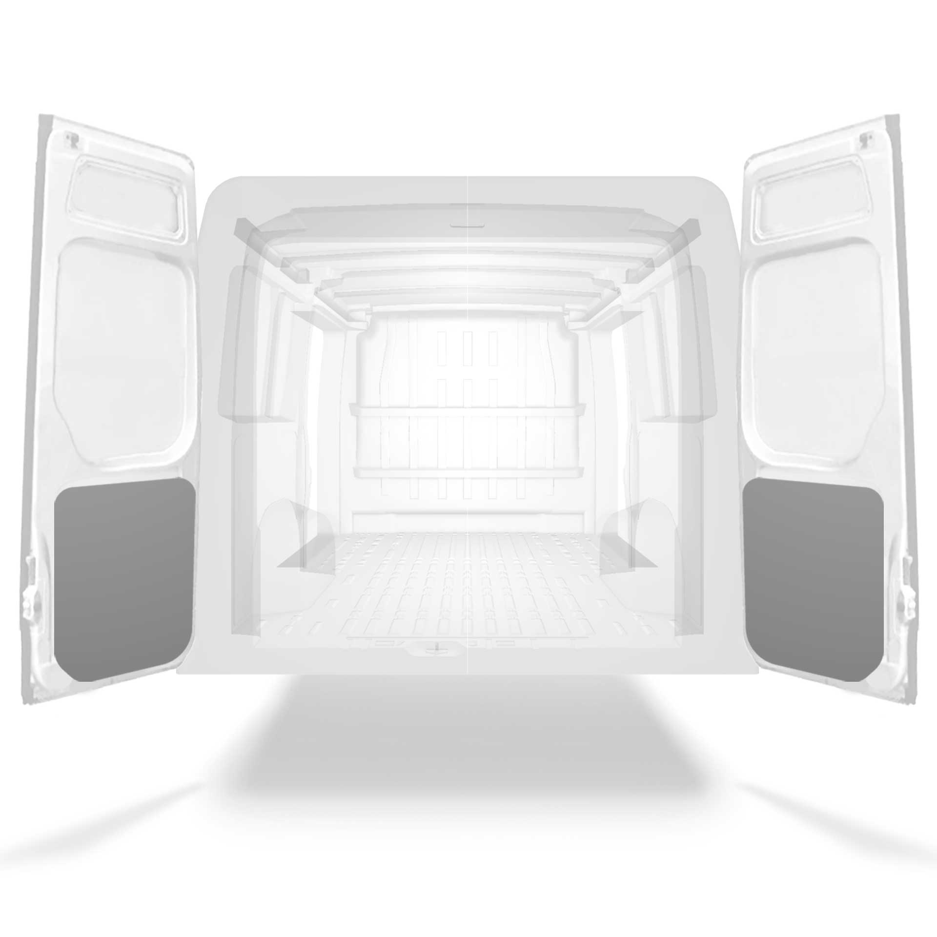 The rear door linings are designed and fabricated to fit in the sections of the rear door/tailgate of the vehicle to minimize weight. The liners protect the vehicle, create a bright working environment and are easy to wipe clean.