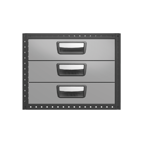 Each drawer is fitted with ball bearing runners as standard, and has a load capacity of 30 kg with a maximum of 100 kg per drawer unit. The drawers are fully extendable and equipped with stoppers. For maximum utility, the drawer unit can be equipped with accessories such as foam plastic liners, plastic inserts and dividers. To help optimize the weight, cover panels and tool boards are optional.