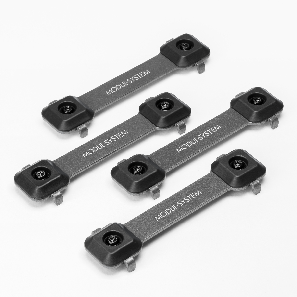 These stacking brackets allow you to stack an e-Inverter or e-Heater on top of the e-Power unit. The brackets attach easily to the T-tracks on the sides of the e-Power, e-Inverter, and e-Heater, providing a stable and secure mounting.