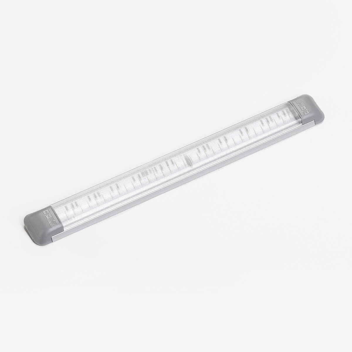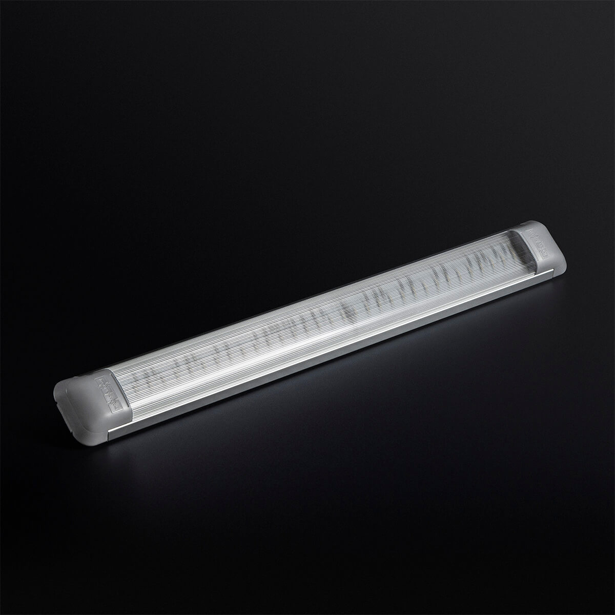 The LED light has a robust design with an aluminum rail, and a polycarbonate cover. Easily mounted on the roof of the vehicle or over a workbench using screws/rivets or adhesive tape/glue.