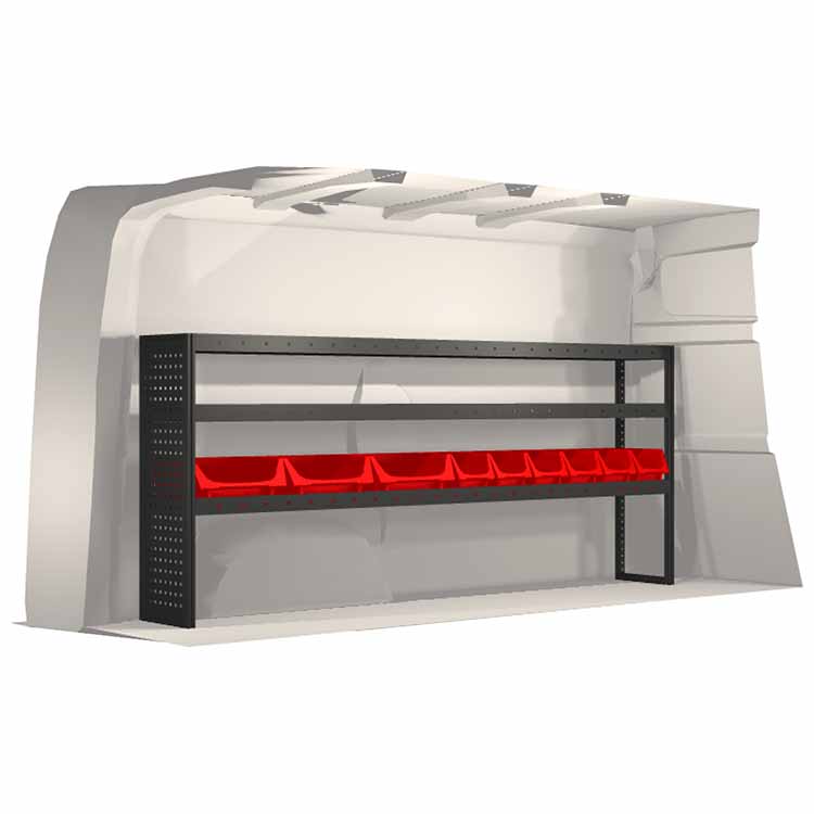 The racking has been specially designed to ensure the optimum fit to the vehicle, as well as the best possible functionality and safety. It has been developed for professional use, is flexible and is intended for service jobs in various types of business. All shelves are equipped with rubber mats, and all drawers with foam plastic liners. Assembly material is included.