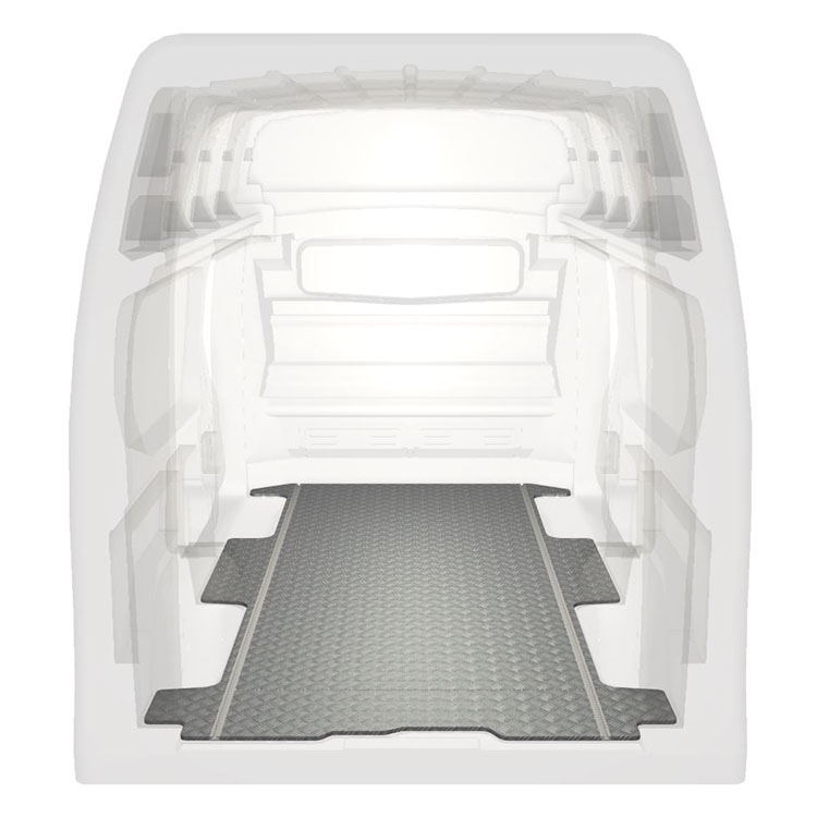 Lightweight and robust extra long floor for a Renault Trafic / Opel Vivaro / Fiat Talento / Nissan NV300 with anti-slip aluminum tread plate and cargo rails (longitudinal) for quick and safe installation of racking systems and other accessories.