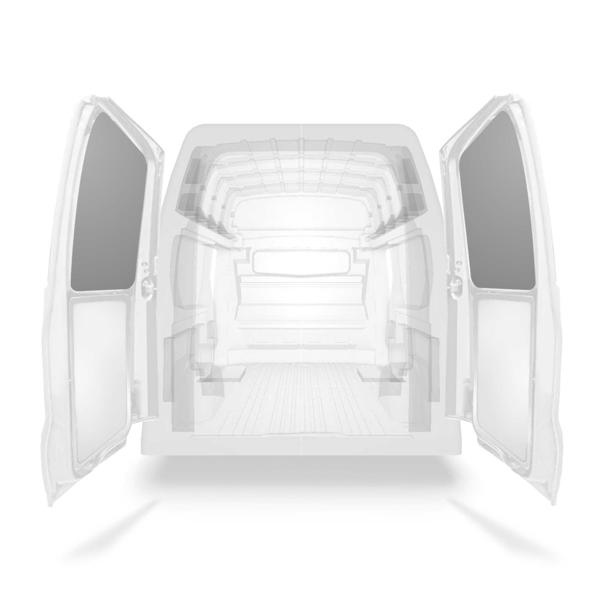 The rear door linings are designed and fabricated to fit in the sections of the rear door/tailgate of the vehicle to minimize weight. The liners protect the vehicle, create a bright working environment and are easy to wipe clean.