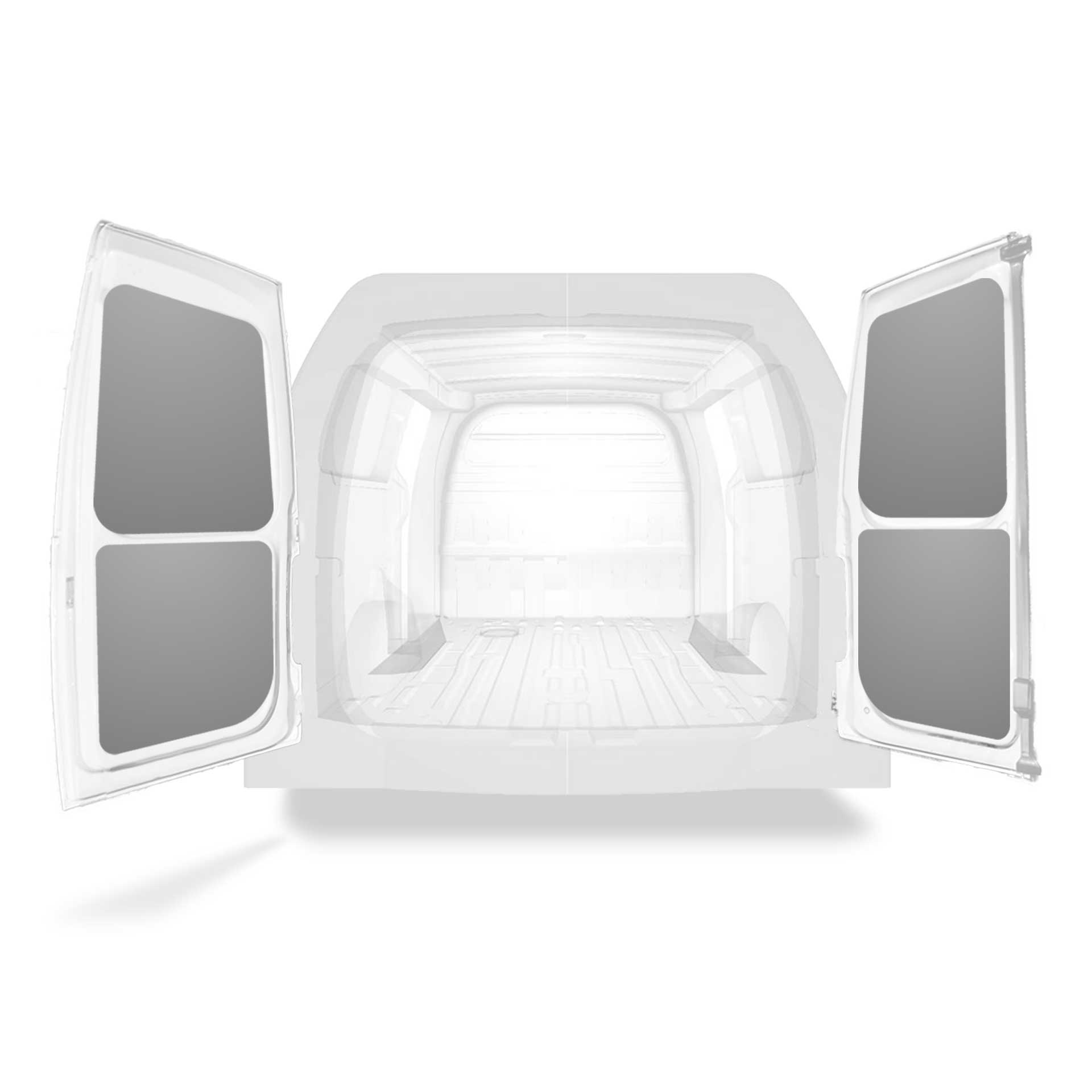 The rear door linings are designed and fabricated to fit in the sections of the rear door/tailgate of the vehicle to minimize weight. The liners protect the vehicle, create a bright working environment and are easy to wipe clean.