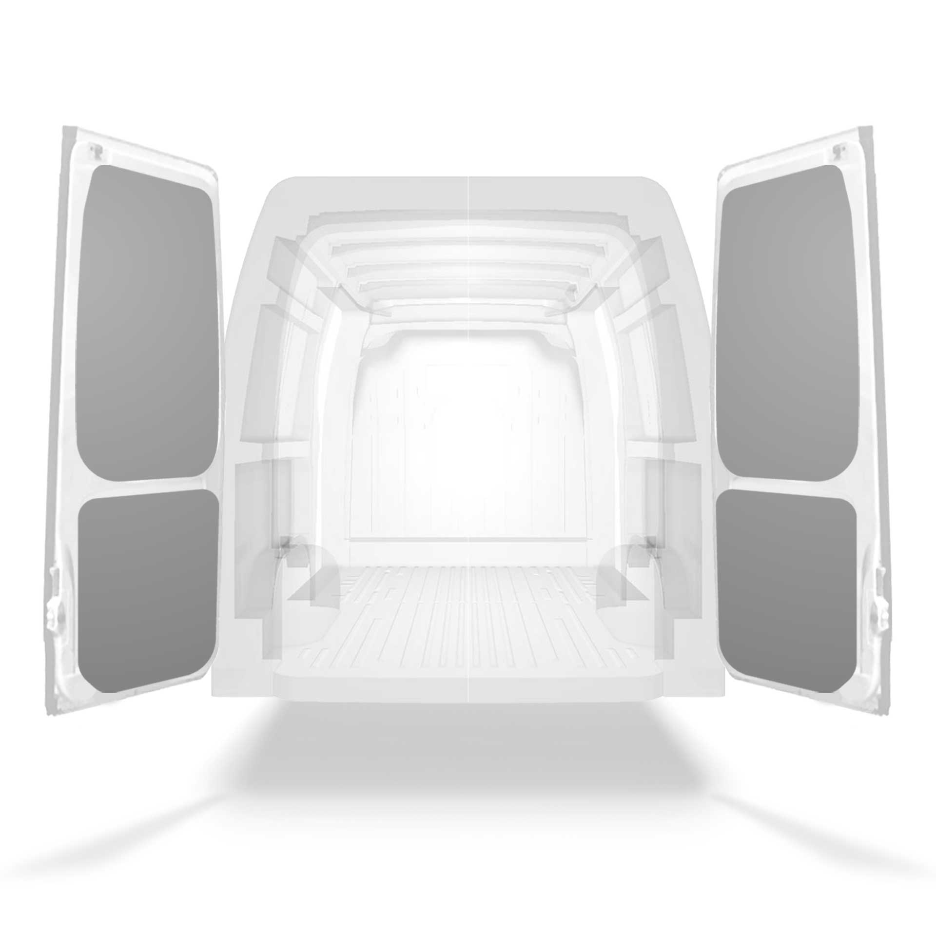 The rear door linings are designed and fabricated to fit in the sections of the rear door/tailgate of the vehicle to minimize weight. The liners protect the vehicle, create a bright working environment and are easy to wipe clean.