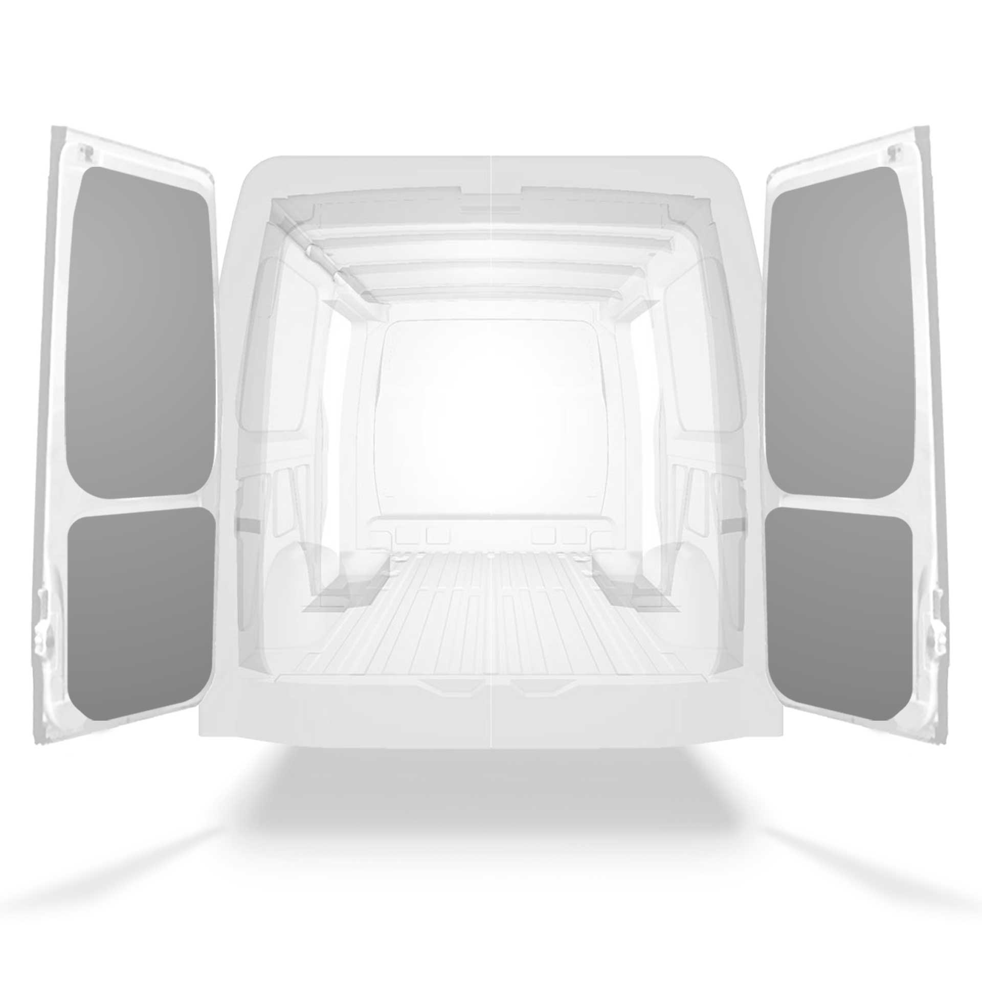 The rear door linings are designed and fabricated to fit in the sections of the rear door/tailgate of the vehicle to minimize weight. The liners protect the vehicle, create a bright working environment and are easy to wipe clean.