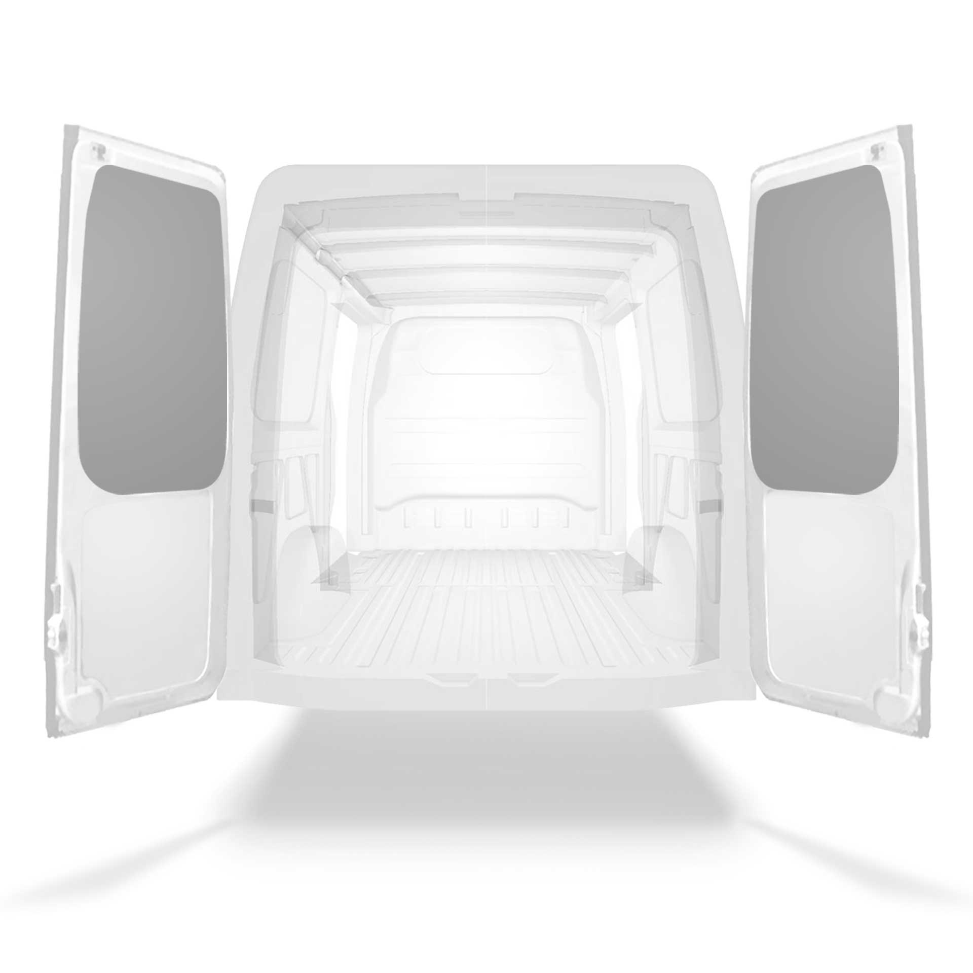 The rear door linings are designed and fabricated to fit in the sections of the rear door/tailgate of the vehicle to minimize weight. The liners protect the vehicle, create a bright working environment and are easy to wipe clean.