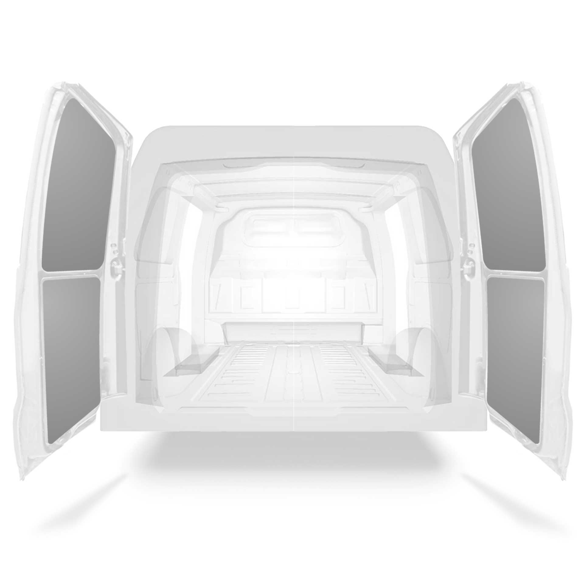 The rear door linings are designed and fabricated to fit in the sections of the rear door/tailgate of the vehicle to minimize weight. The liners protect the vehicle, create a bright working environment and are easy to wipe clean.