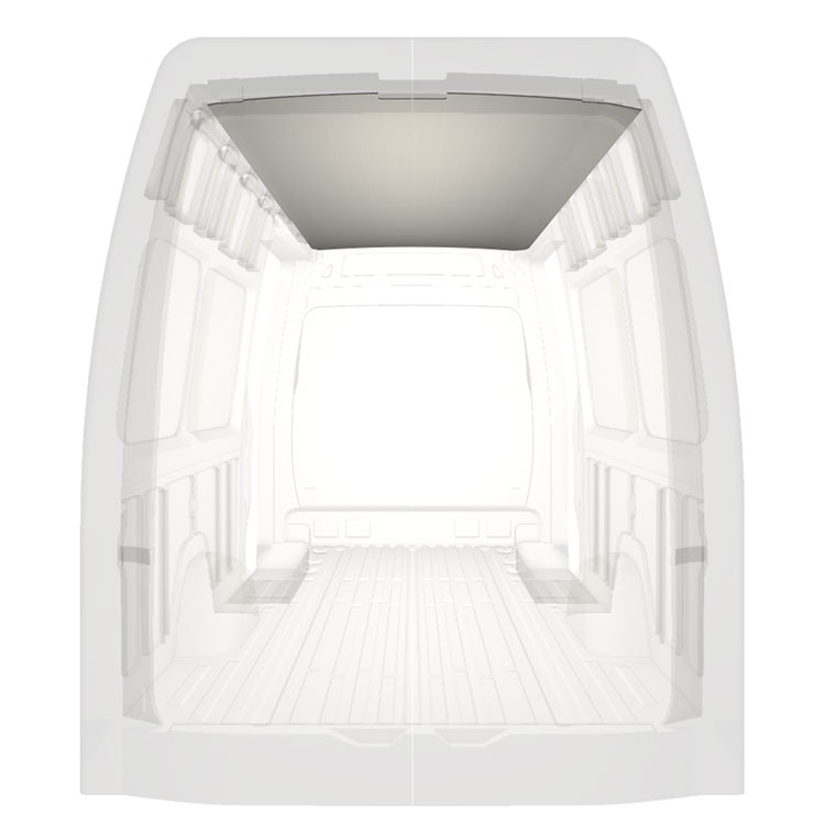 Lightweight roof lining which protects the vehicle and creates a bright and professional finish inside the van.