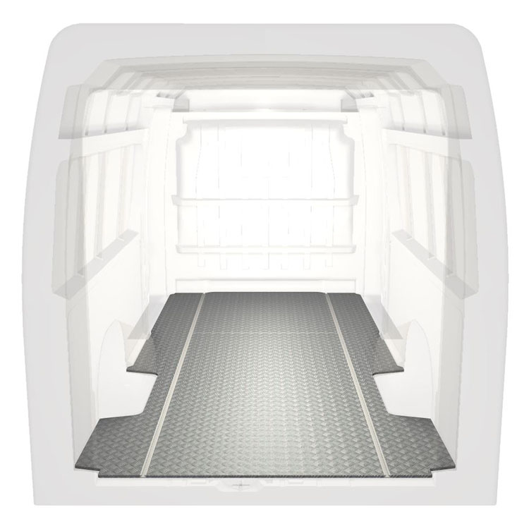 Lightweight and robust extra long floor for a Citroën Jumper / Peugeot Boxer / Fiat Ducato with anti-slip aluminum tread plate and cargo rails (longitudinal) for quick and safe installation of racking systems and other accessories.