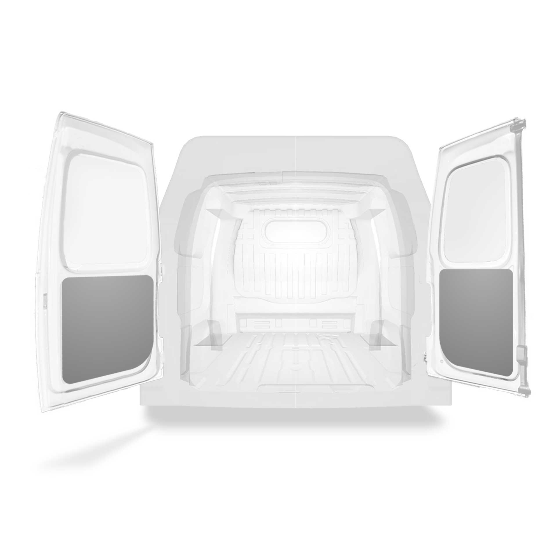 The rear door linings are designed and fabricated to fit in the sections of the rear door/tailgate of the vehicle to minimize weight. The liners protect the vehicle, create a bright working environment and are easy to wipe clean.