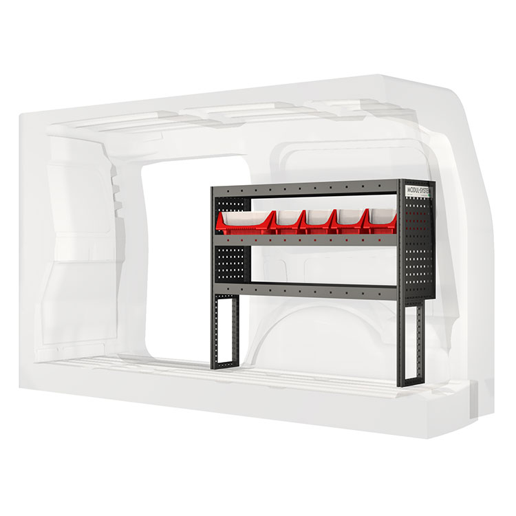 The racking has been specially designed to ensure the optimum fit to the vehicle, as well as the best possible functionality and safety. It has been developed for professional use, is flexible and is intended for service jobs in various types of business. All shelves are equipped with rubber mats, and all drawers with foam plastic liners. Assembly material is included.