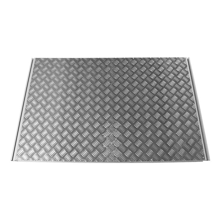 Lightweight and robust standard van floor for a Ford Transit Custom with anti-slip aluminum tread plate and cargo rails (longitudinal) for quick and safe installation of racking systems and other accessories.