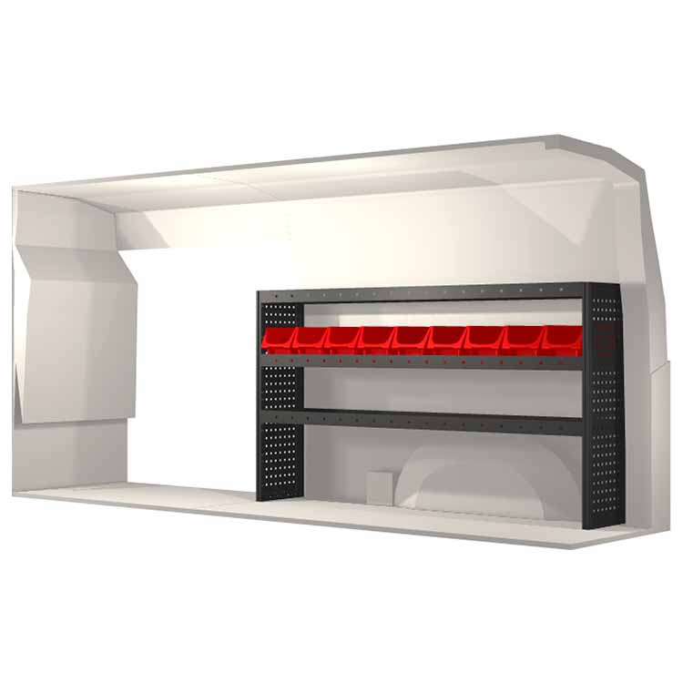 The racking has been specially designed to ensure the optimum fit to the vehicle, as well as the best possible functionality and safety. It has been developed for professional use, is flexible and is intended for service jobs in various types of business. All shelves are equipped with rubber mats, and all drawers with foam plastic liners. Assembly material is included.