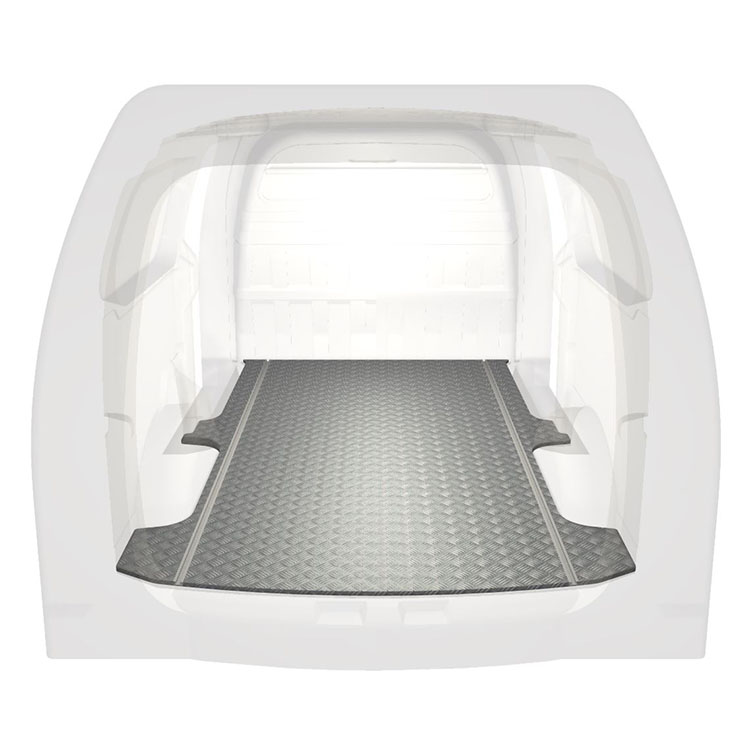 Lightweight and robust extra long floor for a Hyundai H1 with anti-slip aluminum tread plate and cargo rails (longitudinal) for quick and safe installation of racking systems and other accessories.