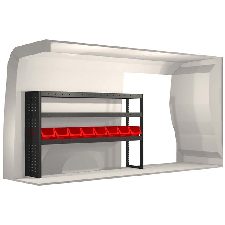 The racking has been specially designed to ensure the optimum fit to the vehicle, as well as the best possible functionality and safety. It has been developed for professional use, is flexible and is intended for service jobs in various types of business. All shelves are equipped with rubber mats, and all drawers with foam plastic liners. Assembly material is included.