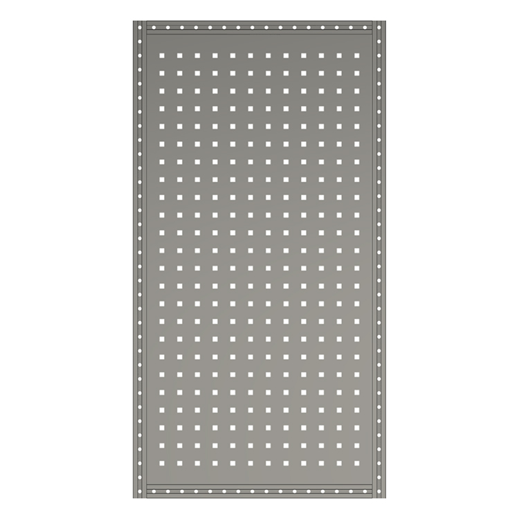 Shelf end supports with tool board are available in several heights and depths. The T-tracks integrated in the profiles are used for securing cargo, attaching accessories and for versatile surface mounting.
