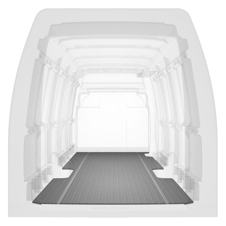 Lightweight and robust extra long floor for a Iveco Daily with anti-slip aluminum tread plate and cargo rails (longitudinal) for quick and safe installation of racking systems and other accessories.