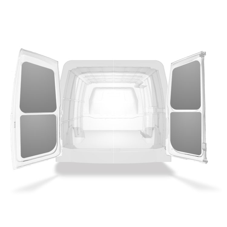The rear door linings are designed and fabricated to fit in the sections of the rear door/tailgate of the vehicle to minimize weight. The liners protect the vehicle, create a bright working environment and are easy to wipe clean.