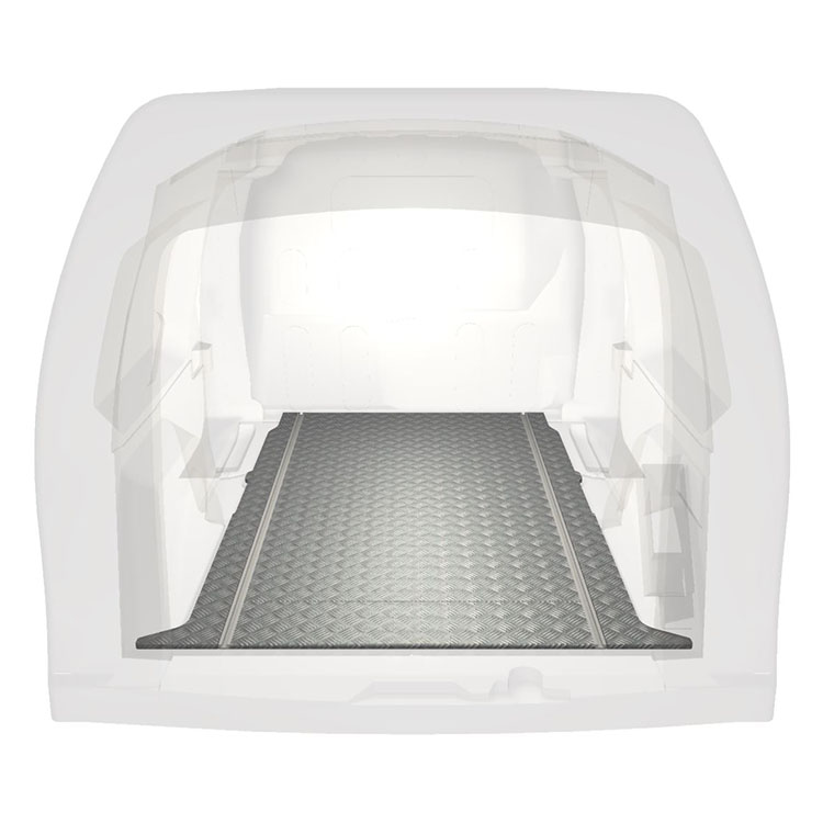Lightweight and robust extra long floor for a Mercedes Citan / Renault Kangoo with anti-slip aluminum tread plate and cargo rails (longitudinal) for quick and safe installation of racking systems and other accessories.