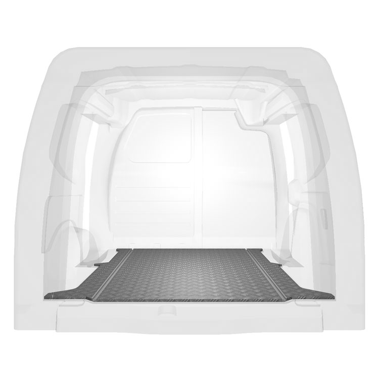 Lightweight and robust XL-floor for a Mercedes Citan / Renault Kangoo 21- with anti-slip aluminum tread plate and cargo rails (longitudinal) for quick and safe installation of racking systems and other accessories.