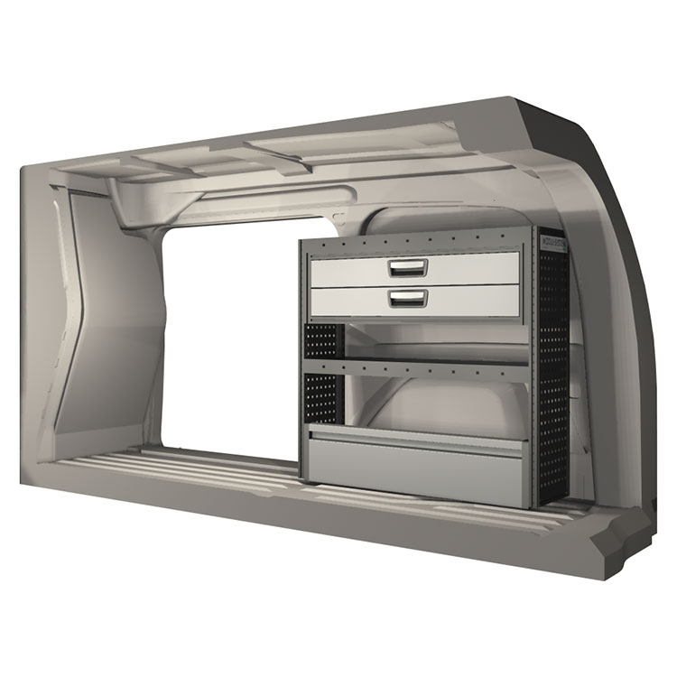 The racking has been specially designed to ensure the optimum fit to the vehicle, as well as the best possible functionality and safety. It has been developed for professional use, is flexible and is intended for service jobs in various types of business. All shelves are equipped with rubber mats, and all drawers with foam plastic liners. Assembly material is included.