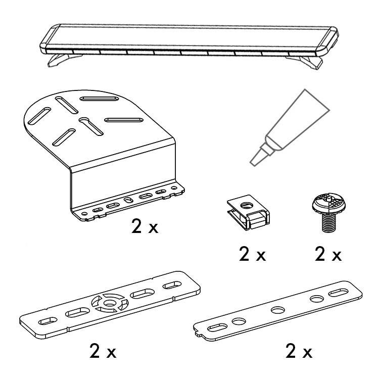 Kit comprising of one light bar and a complete set of brackets for installation directly to the vehicle OEM fix points. By utilizing the integrated fix points, no unnecessary holes have to be drilled to the vehicle body, eliminating the risk for corrossion and protecting the residual value of the vehicle.