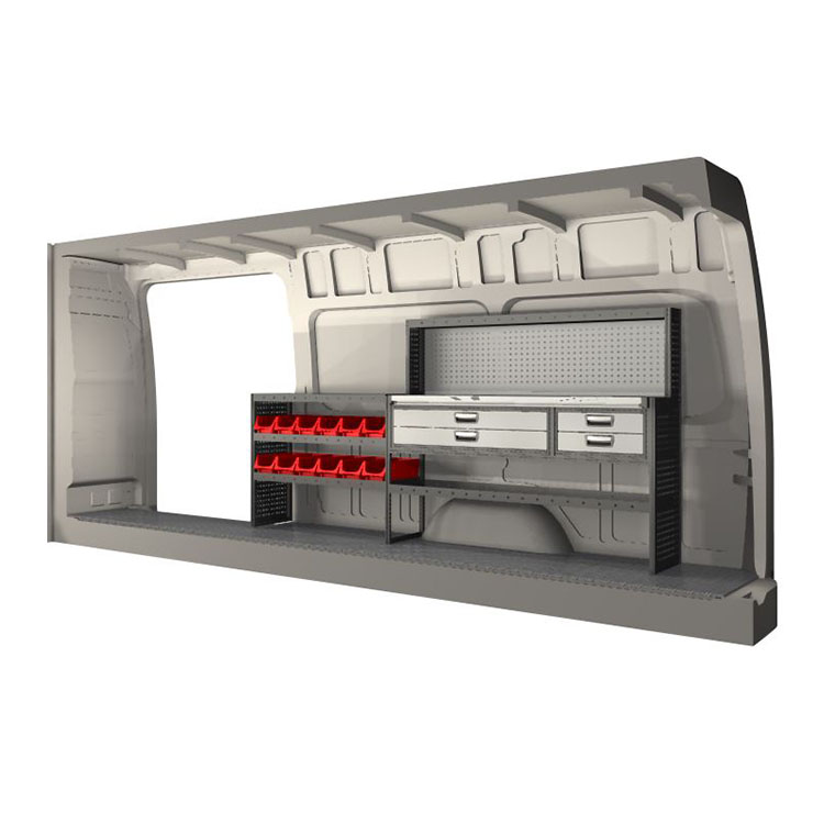 The racking has been specially designed to ensure the optimum fit to the vehicle, as well as the best possible functionality and safety. It has been developed for professional use, is flexible and is intended for service jobs in various types of business. All shelves are equipped with rubber mats, and all drawers with foam plastic liners. Assembly material is included.