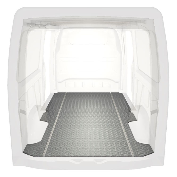 Lightweight and robust standard van floor for a Mercedes Sprinter with anti-slip aluminum tread plate and cargo rails (longitudinal) for quick and safe installation of racking systems and other accessories.