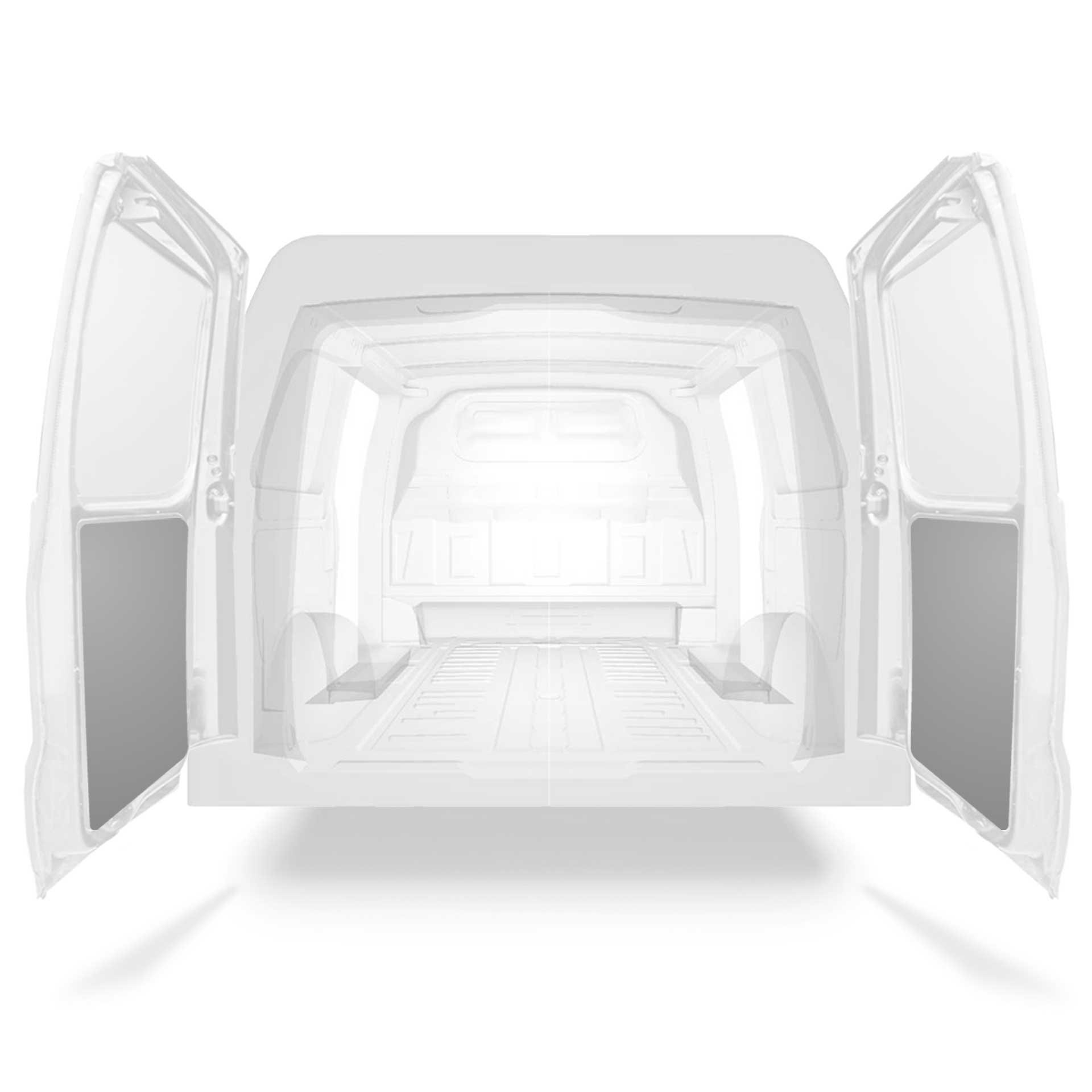 The rear door linings are designed and fabricated to fit in the sections of the rear door/tailgate of the vehicle to minimize weight. The liners protect the vehicle, create a bright working environment and are easy to wipe clean.