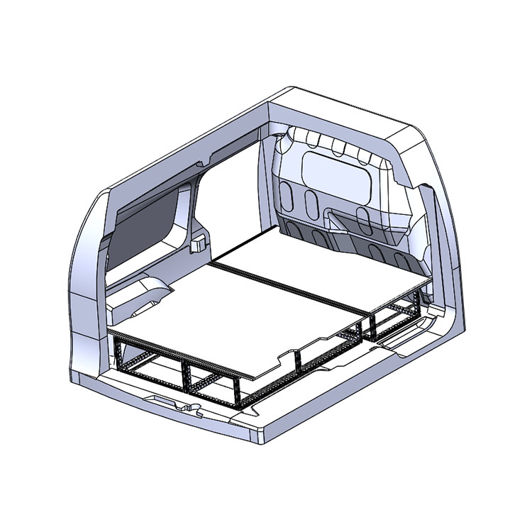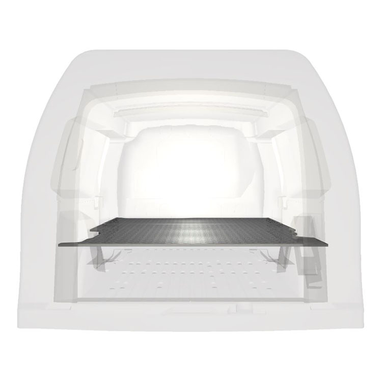 Double floor for a Mercedes Citan/Renault Kangoo L2 2010-. The floor is designed to fit an extra-long drawer solution with one drawer unit 486x1296x270 and one 648x1296x270 coming out from the rear doors, and one drawer unit 486x1296x270 coming out from the side door.