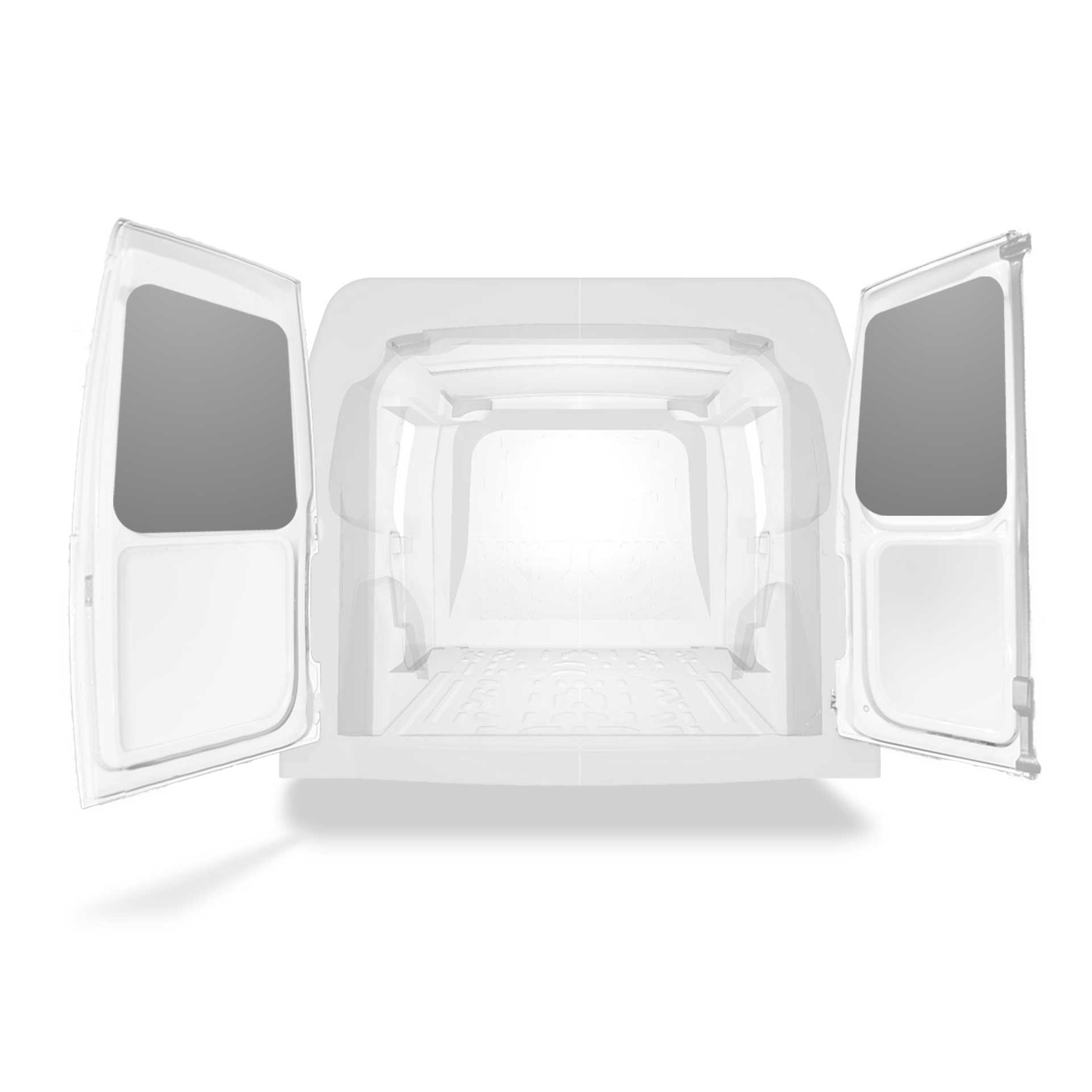 The rear door linings are designed and fabricated to fit in the sections of the rear door/tailgate of the vehicle to minimize weight. The liners protect the vehicle, create a bright working environment and are easy to wipe clean.
