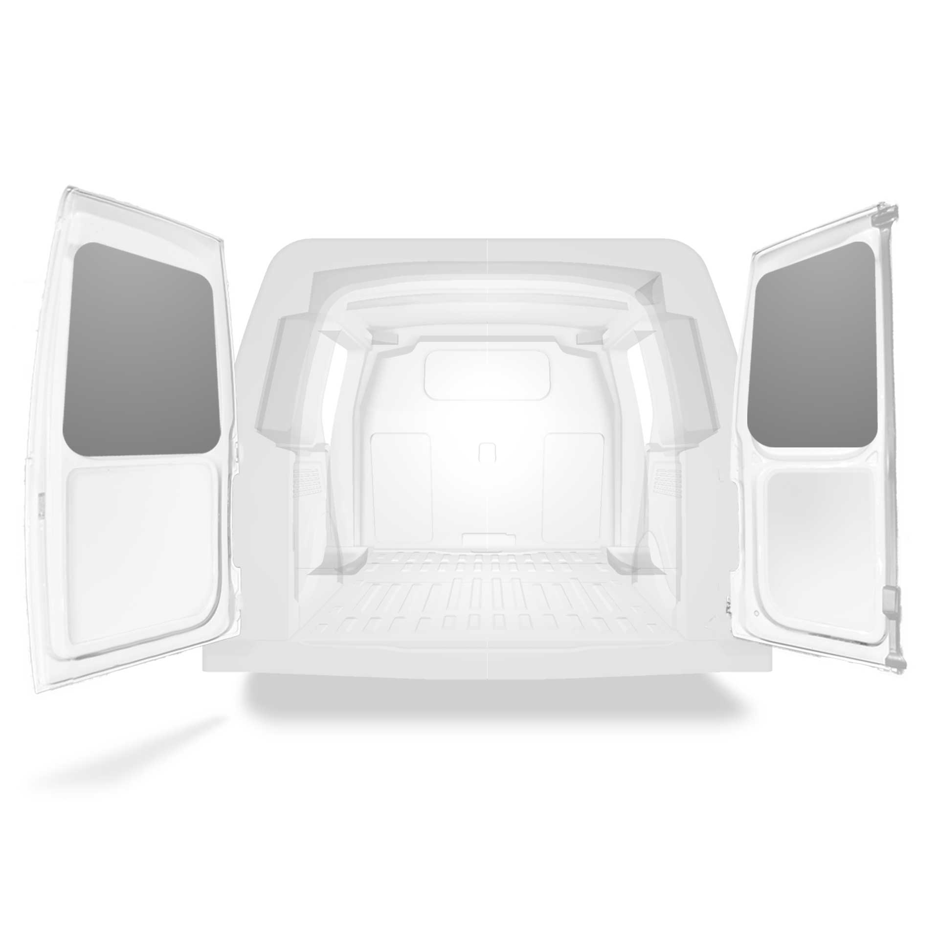 The rear door linings are designed and fabricated to fit in the sections of the rear door/tailgate of the vehicle to minimize weight. The liners protect the vehicle, create a bright working environment and are easy to wipe clean.