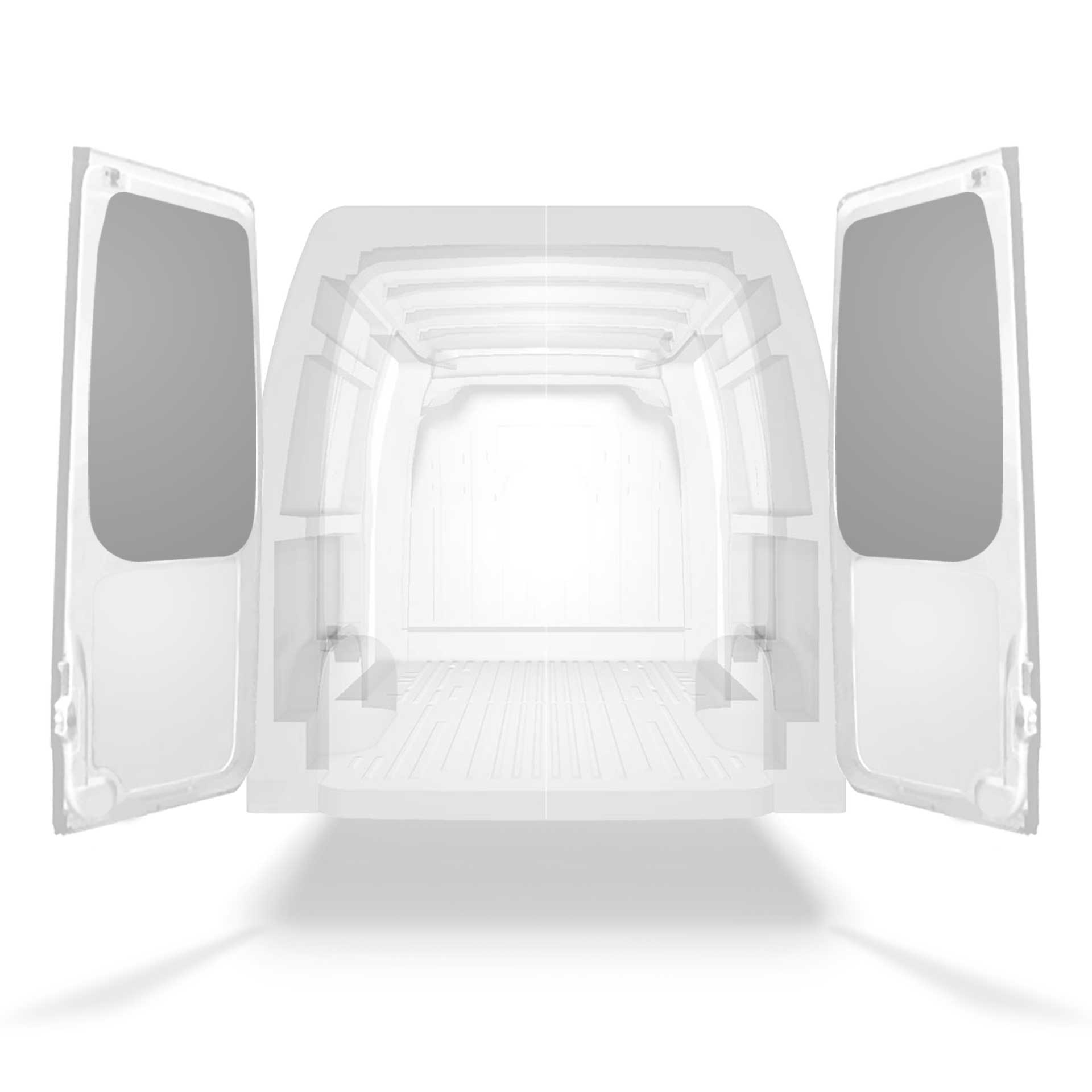 The rear door linings are designed and fabricated to fit in the sections of the rear door/tailgate of the vehicle to minimize weight. The liners protect the vehicle, create a bright working environment and are easy to wipe clean.