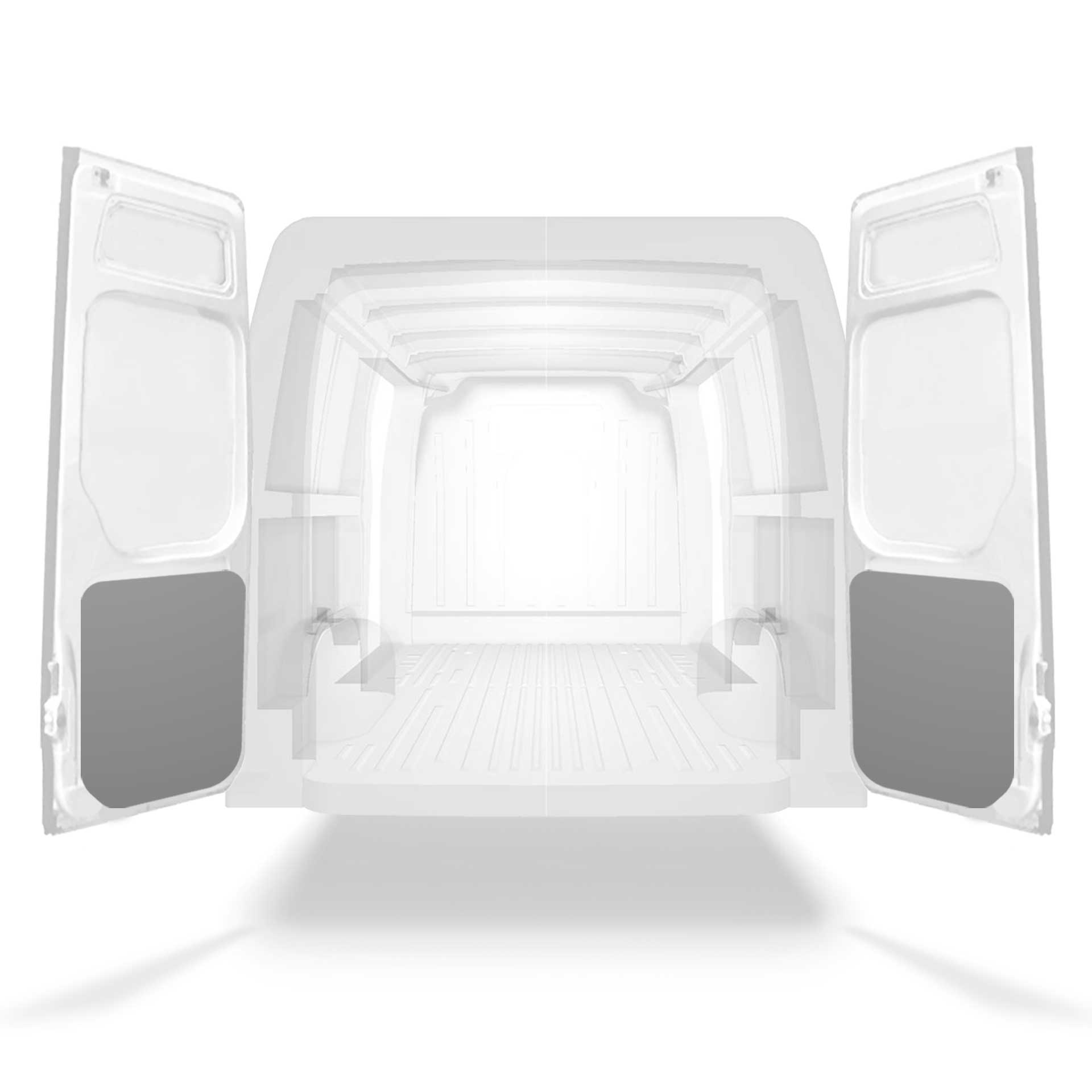 The rear door linings are designed and fabricated to fit in the sections of the rear door/tailgate of the vehicle to minimize weight. The liners protect the vehicle, create a bright working environment and are easy to wipe clean.