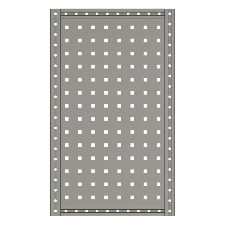 Shelf end supports with tool board are available in several heights and depths. The T-tracks integrated in the profiles are used for securing cargo, attaching accessories and for versatile surface mounting.