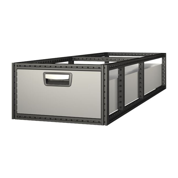 The extra-long drawer units have a frame from ultra-high strength steel and drawers from aluminum. The drawers are equipped with ball bearings as standard, and the mix from fixed and flexible bearings makes them both stable and easy to operate.