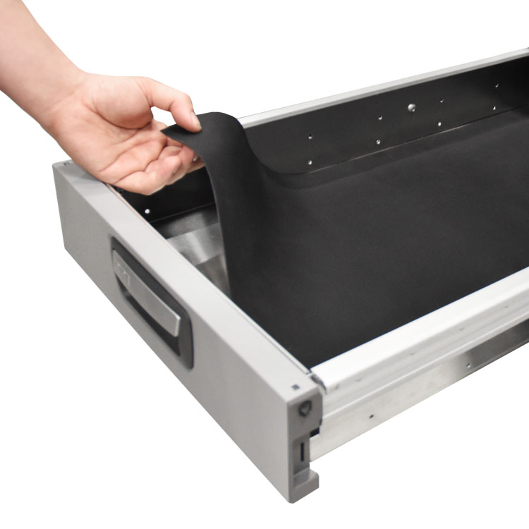 Non-slip, sound-deadening and shock-absorbing rubber mat for extra-long drawers. The mat can easily can be removed for cleaning. Supplied cut to size.