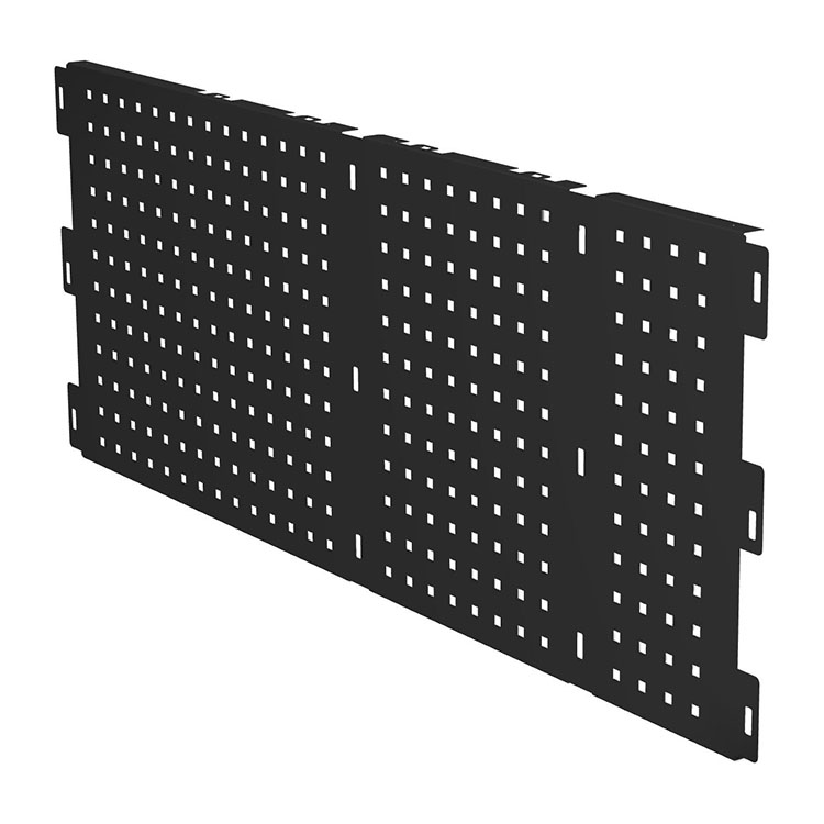 Tool board for extra-long drawer unit. It protects the drawer while contributing to a nice design. The tool board is punched with 9 mm holes at 34 mm pitch spacing, which permits attachment of tool holders and other accessories. Installed using screws (not included).
