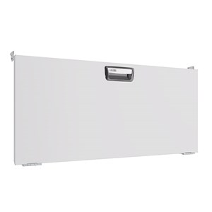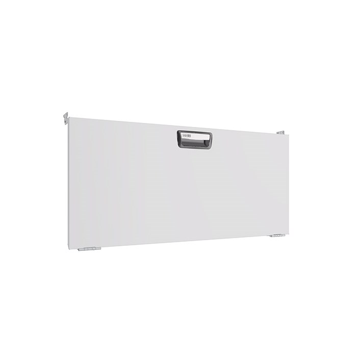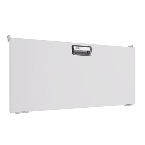 Drop down doors are fitted with gas springs on both sides that ensure smooth opening and closing. The opening angle is 90 degrees. The door pull has a built-in catch that prevents it from opening while the vehicle is in motion. The door is also suitable for wheel arch frames fitted with bench tops. When fitting doors between two shelf end supports, a mounting frame must be used.
