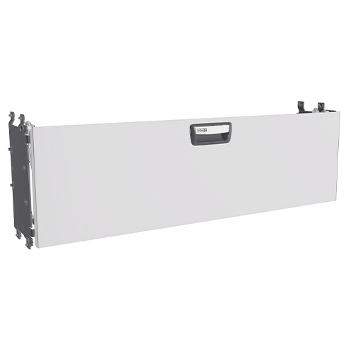 The doors, equipped with gas springs, are designed to open upwards to provide maximum use of floor space, easier loading, and improved ergonomics for the user. Please note that the vertically opening door cannot be combined with a bench top.