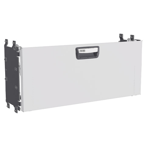 The doors, equipped with gas springs, are designed to open upwards to provide maximum use of floor space, easier loading, and improved ergonomics for the user. Please note that the vertically opening door cannot be combined with a bench top.