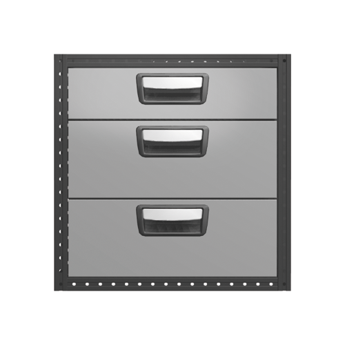 Each drawer is fitted with ball bearing runners as standard, and has a load capacity of 30 kg with a maximum of 100 kg per drawer unit. The drawers are fully extendable and equipped with stoppers. For maximum utility, the drawer unit can be equipped with accessories such as foam plastic liners, plastic inserts and dividers. To help optimize the weight, cover panels and tool boards are optional.