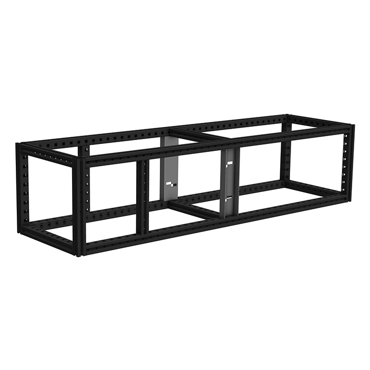 Drawer unit frame for individual configuration of an extra-long drawer unit. The reinforced frame, made from ultra-high strength steel, has a high bearing capacity, which makes it the perfect base for double floors.