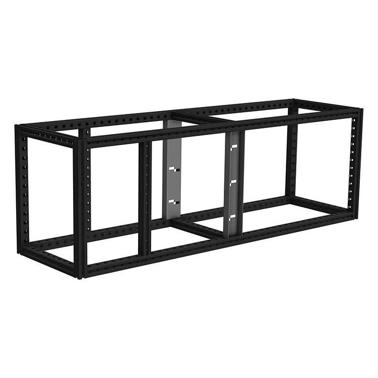 Drawer unit frame for individual configuration of an extra-long drawer unit. The reinforced frame, made from ultra-high strength steel, has a high bearing capacity, which makes it the perfect base for double floors.